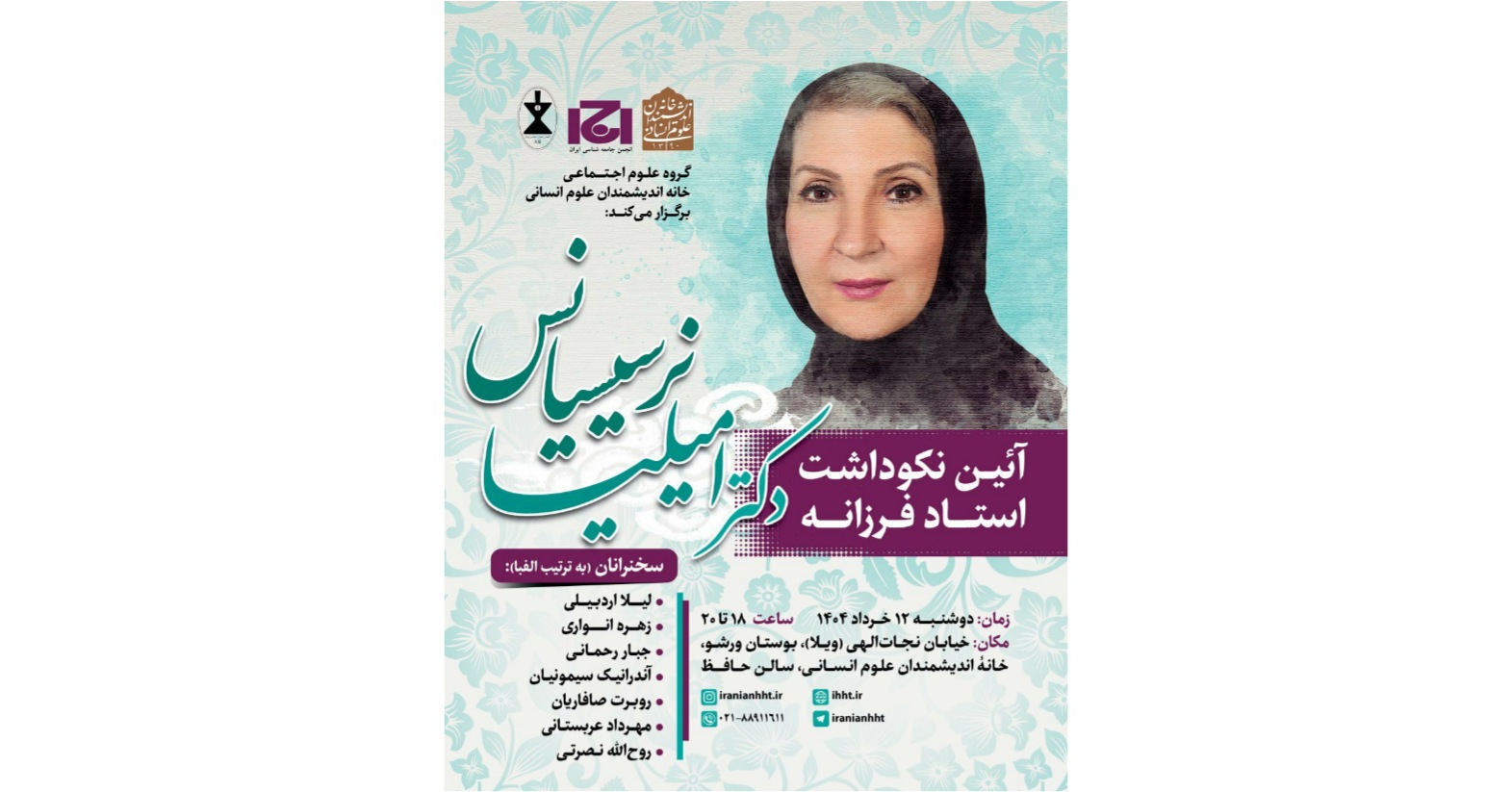 در روز دوشنبه، ۱۲ خرداد ۱۴۰۴، ساعت ۱۸، آیین نکوداشت استاد فرزانه، خانم دکتر امیلیا نرسیسیانس، از سوی انجمن جامعه‌شناسی ایران، انجمن انسان‌شناسی ایران، انسان‌شناسی و فرهنگ و خانه اندیشمندان علوم انسانی در سالن حافظ به‌صورت حضوری برگزار شد. این مراسم با حضور استادان و پژوهشگران برجسته حوزه‌های انسان‌شناسی و جامعه‌شناسی و علاقه‌مندان به فرهنگ و علوم انسانی برگزار گردید و به پاس سال‌ها فعالیت علمی و فرهنگی ارزشمند دکتر نرسیسیانس، گامی بزرگ در شناساندن و ارج نهادن به دستاوردهای ایشان بود.