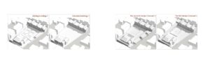 ابتدا یک لیستی از فضاهایی که برای یک هنرستان هنرهای زیبا نیز لازم بود تهیه شد. سپس با توجه به پتانسیلهای سایت قرارگیری ساختمانها ایدههای توسعه برخی بخشها تکمیل شد. برای توسعه آتلیهها و کلاسها دو کانسپت طراحی شد. در اولی به بخش شرقی سایت یک فضای شیشهای الحاق میشد که ساختمان شمالی و جنوبی موجور را هم به هم متصل میکرد. کلاسها در طبقه بالای این بخش قرار گرفتند و طبقه پایین آن یک فضای نیمه باز در نظر گرفته شد که با سکوهایی به حیاط متصل میشود و فضایی برای گفتگو و تعامل دانشآموزان میباشد که با کافهای که در ساختمان شمالی در نظر گرفته شده است نیز در راتباط است. در کانسپت دوم بخش الحاقی کلاسها در ضلع مقابل طراحی شد و اتصالی بین دو ساختمان موجود ایجاد نمی کند. در این کانسپت سطح حیاط در یک بخش گودبرداری میشود و پلکانهایی به سمت زیرزمین ساختمان شمالی که کاربری آن کافه در نظر گرفته شد طراحی شد. در این فضای تعاملی دانشآموزان میتوانند از این سکوهای ایجاد شده برای فضایی جهت نشستن، مطالعه و یا گفتگو استفاده کنند. در واقع این یک فضای پویا و سرزنده در ارتباط با کافه است.