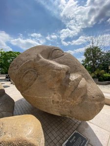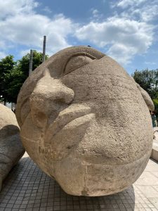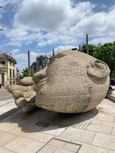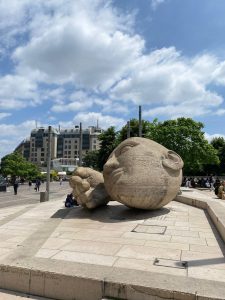 این مجسمه، که از پشت شبیه یک گوی سنگی بزرگ سه قسمتی به نظر میرسد، در سال ۱۹۸۶، توسط مجسمهساز فرانسوی، «آنری دو میلر» [Henri de Miller] ساخته شده است.