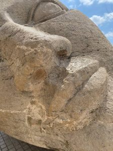 [۵] A l’écoute des rumeurs souterraines, tel un galet, cette sculpture est échouée au hasard d’une marée imaginaire, sur les rivages du temps.
