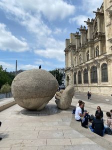 چند روز پیش، برای رسیدن به «کلکسیون پینو»، پس از خروج از متروی «لئال»، از این مسیر میگذشتم. خیلی از گردشگرها در میان دست این مجسمه میایستند و عکس میگیرند. در واقع، گویا، پیام این اثر بیشتر از این که «شنیده» شود، «دیده» میشود.