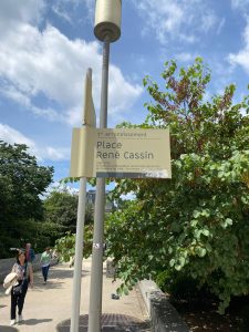 [۲] «رنه کسن» (۱۹۷۶-۱۸۸۷)، حقوقدان، قاضی و دیپلمات فرانسوی بود که به خاطر تدوین «اعلامیهی جهانی حقوق بشر» شهرت جهانی دارد. او از بنیانگذاران نظام حقوقی نوین دنیای آزاد، مبتنی بر «حقوق انسانی» بود. همچنین، «رنه کسن» برندهی جایزهی صلح نوبل سال ۱۹۶۸ است.