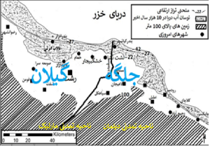 جدول ۱. تغییرات نوسان سطح آب دریای کاسپین و وضعیت جلگه گیلان از ۱۰ هزار سال تا ۶۰۰ سال پیش