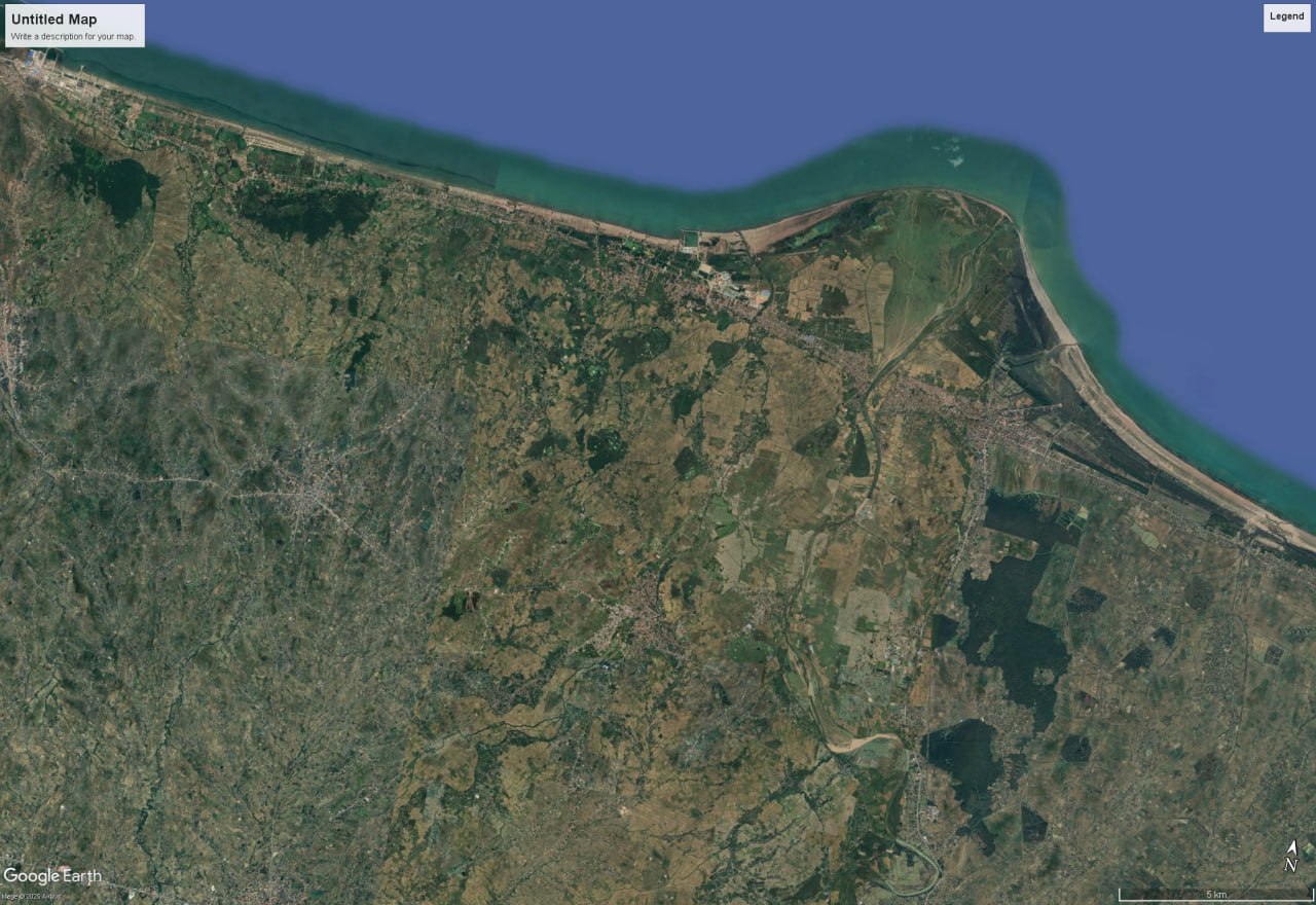 یادآوری کنیم که جزئیات پسروی و پیشروی سطح آب دریای کاسپین در این جدول نشان میدهد که طی۱۰ هزار سال تا ۶۰۰ سال پیش یعنی حدودن تا اوایل حکومت کیاییان که در شرق گیلان حکومت خود را آغاز کردند، در مجموع سطح آب دریای خزر در ارتفاع بین منفی ۵/۲۲متر (منفی بیست و دو متر) و منفی۴۲ متر (منفی چهل و دو متر) در نوسان بوده است. چنانکه گفته شد این دادهها رقومی هنوز تصویر فضایی مناسبی برای تحلیل تاریخی به دست نمیداد. از اینرو، این دادها به صورت نقشه ترسیم شد تا تصویر فضایی روشنتری از وضعیت بلقوۀ زیستِ جلگۀ گیلان در ۱۰هزار سال اخیر به دست داده باشد.[۱] نقشۀ (۲) به همین منظور تهیه شده است تا این تغییرات سطح آب دریای خزر و وضعیت جلگۀ گیلان را در این دورۀ طولانی و در ارتباط با موقعیتِ شهرهای امروزی نشان دهد.