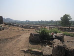 دوباره پا کوبان بر پدال های دوچرخه سر از محوطه وسیعی از معابد ,مجسمه ها و قصرهای تخریب شده ولی با کنده کاری های منحصر به فرد در آوردیم که سازمان میراث فرهنگی هند در حال خاک برداری , کاوش و ترمیم آن ها بود نام این بخش قصر کریشنا دیواریا Krishnadevaraya Palace بود که در بین سال های ۱۵۰۹ تا ۱۵۲۹ میلادی پادشاه منطقه ویجی نگر بوده است ,به جایی رسیدیم که با بیست پله در واقع بلندترین مکان در آن محوطه محسوب می شد و دور تا دور این مکان نقوش و کنده کاری های بسیار زیبایی به چشم می خورد.