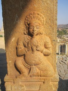 مردی در حال نواختن سازی مانند دف بر روی یکی از ستون های معبد هزار راما منطقه باستانی هامپی