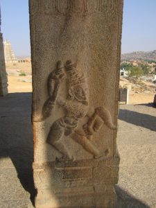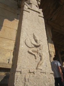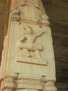 مردی در حال رقص و نمایش بر روی یکی از ستون های معبد هزار راما منطقه باستانی هامپی
