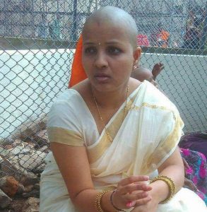 زنی سر تراشیده در منطقه باستانی هامپی