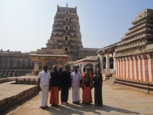 زیارت کنندگان معبد باستانی ویروپاکشا در منطقه هامپی با پوشاک سنتی مردان جنوب هند یعنی دوتی Dhoti