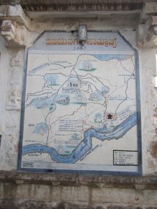 نقشه راهنمای آثار تاریخی منطقه باستانی هامپی بر روی دیوار معبد باستانی ویروپاکشا در منطقه هامپی