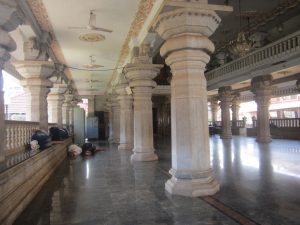من هم به قیمت ده روپیه یکی از این پکیج ها را برای خوشحال کردن زن فروشنده خریداری کرده و از پله های معبد بالا رفتم نمای بیرونی معبد نیمه خاکستری نیمه آجری رنگ بود و لینگام Lingam که علامت آلت تناسلی شیوا که نماد قدرت باروری و ازدیاد نسل انسان در هندویسم می باشد نیز بر یکی از دیوارها نقش شده بود وارد معبد شده و کفش هایم را بیرون معبد در آورده و در جای مخصوصی که برای آن ها در نظر گرفته شده بود قرار دادم پیش از ورود به محوطه اصلی باید پاها ,صورت و دهان خود را در زیر شیر آبی که به همین منظور در گوشه ای تعبیه کرده بودند می شستم ,البته من هم از دستور پیروی کرده و پاها و صورت خود را شسته وارد محوطه اصلی معبد شدم , روبرویم یک برج بلند کرم رنگ که به شکل عمارت شش طبقه کوچکی ساخته شده و در هر طبقه محفظه های کوچکی برای چراغ های گلی و سفالی که در زبان هندی و سانسکریت به آنها دیپ Deep گفته می شود تعبیه شده بود وجود داشت به این برج های بلند در زبان سانسکریت دیپ استمبا Deepstambha یا برج نور می گویند نام دیپ استمبا بدین علت بر روی این برج ها گذارده شده که در هر کدام از این محفظه ها چراغ های روغنی یا همان دیپ Deep را روشن کرده تا در مراسم خاص مانند جشنواره ها و مراسم عبادی روشنایی بخش معبد باشند چند قدم آن طرف تر خود معبد اصلی واقع شده بود که کسی حق عکاسی و فیلمبرداری از داخل آن را نداشت و البته طبق معمول من هم به قوانین احترام گذارده و کار عکاسی را متوقف کردم از پله ها بالا رفته و داخل تالار اصلی معبد شدم که به آن در زبان سانسکریت سبها گریها Sabha Girha یا تالار اجتماعات گفته می شود در محوطه اصلی معبد بر بالای در ورودی مجسمه دورگا Durga ایزد بانوی جنگ قرار گرفته بود که در هر کدام از چهار دستش چیزی قرار داشت در یکی از دستانش نیزه سه شاخه ای که به آن در زبان سانسکریت تیری شول Trishul گفته می شود و نماد قدرت , اراده قوی و هم چنین مظهر گذشته ,حال و آینده است در برخی کتب هندو ذکر شده که این نیزه اشاره به بدن ,روح و ذهن دارد که باید با یکدیگر در هماهنگی باشند و درواقع یکی از سلاح هایی است که خدایان و ایزدبانوهای هندو با خود حمل می کنند , بود , در دست دیگرش سر بریده یکی از اهریمنان که آسورا Asura نام دارند , در دست سوم یک کوزه گلی و در دست چهارمش اهریمن دیگری آماده کشتن بود دورگا هم چنین به نام شکتی Shakti یا قدرت زنانه و محافظ جهان نیز شناخته می شود در دو طرف او دو فرشته آسمانی یا آپسرا Apsara نیز تمام قد ایستاده و هر کدام کوزه ای گلی در دست داشتند کوزه که در زبان سانسکریت به آن کاماندالو Kamandalu گفته می شود در هندویسم نشانه آب حیات یا آمریت Amrita می باشد که نماد باروری ,زندگی جاودانی و ثروت است.